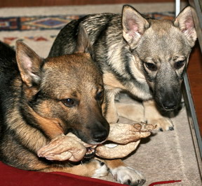 Bonnie is erg tevreden over Ronja. Ze vindt haar zelfs niet te dik, waar ik een beetje bang voor was. Sinds de kennelreünie een maand eerder geven we Ronja 2x per dag eten. Zoals Bonnie terecht opmerkt, train ik zoveel met haar dat ze toch wel haar portie tussendoortjes binnenkrijgt. En belangrijker, ze is in een maand tijd 1 kg aangekomen. Een kilootje dat ze wel kon gebruiken. Wel lijkt ze vrij klein te blijven. Maar de 9 kg, het mininumgewicht volgens de rasstandaard, zal ze in mijn inschatting zeker gaan halen.