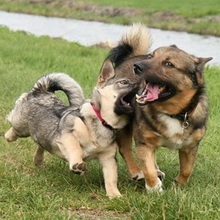 De dominante hond in de rangorde zou een agressieveling zijn. Dit is echter onzin. De meeste dominante honden zijn echter kalme, waardige dieren die zelden de noodzaak zien om te dreigen. De meeste lichaamstaal die bij honden vaak als dominant gedrag worden uitgelegd, komt voort uit angst. - Social Hierarchy & Pack Behavior, Gail Fisher
